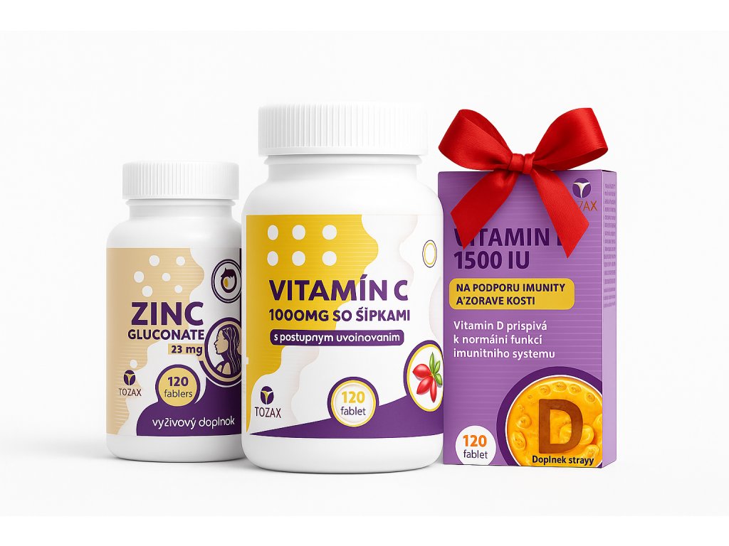 | Obsah balenia: | TOZAX Vitamín C 1000 mg, TOZAX Zinok, TOZAX Vitamín D |