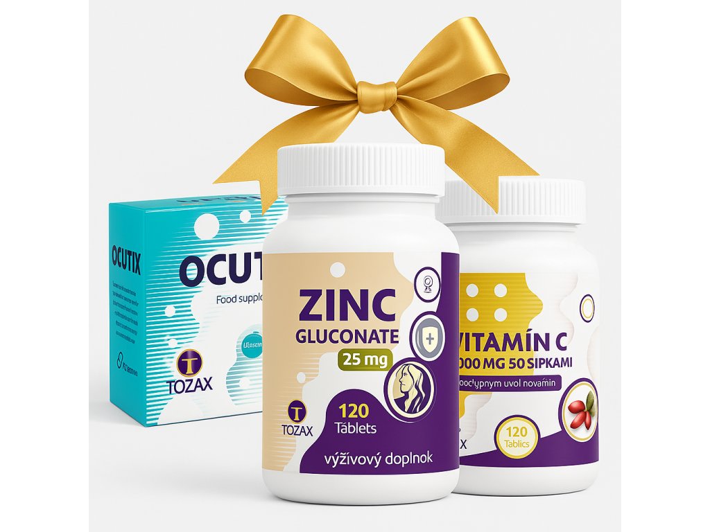 | Obsah balíčka: | TOZAX Ocutix Luteín 60 kapsúl, TOZAX Vitamín C 1000 mg, TOZAX Zinok |